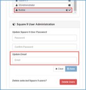 - In the Square 9 User Administration group, in the Update Email text box, enter the user’s email address.