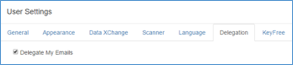 Note: A Delegation Manager must be assigned to any user who wants to have their Workflow emails forwarded. If the Allow Delegation checkbox has been enabled, the end user will see the Delegation tab, but Delegation will not work until a Manager is assigned.