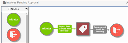 Drag Nodes onto the Design Canvas in any order you want and repositioned them for the best graphical effect. A Node Settings dialog box will appear automatically, ready for your input, each time a Node is dragged to the Canvas. While Workflow cannot be saved and published without a single Initiator or Import Node at the beginning and one or more End Nodes at the end, it can have as many other Nodes in between the start and the finish of the design as you need.