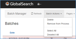 - On the Batch Manager toolbar, in the Batch Actions menu, choose Remove from Process.