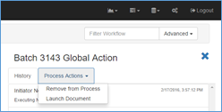 - Click the Process Actions tab, which appears when a selected GlobalAction document is in a Queue, is processing, or is errored, and select Remove from Process.