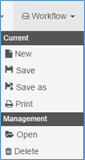 From the Workflow menu, you can save, reopen, copy, print, and delete the Workflow design.