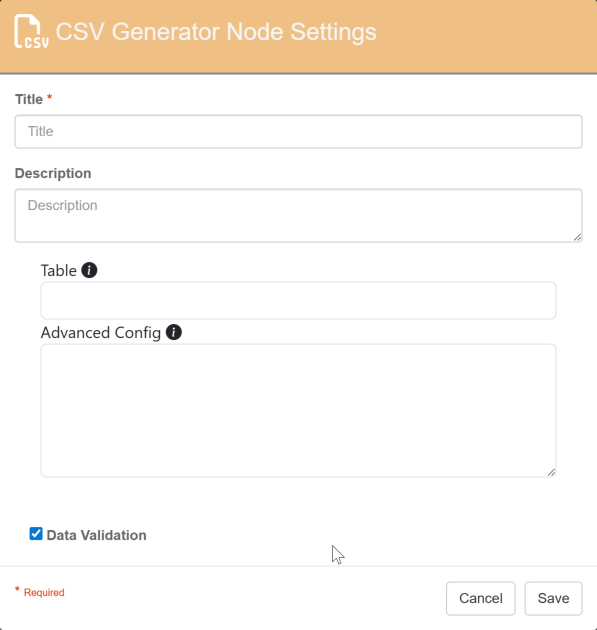 Customize the fields exported in the generated CSV file by entering an Advanced Config.