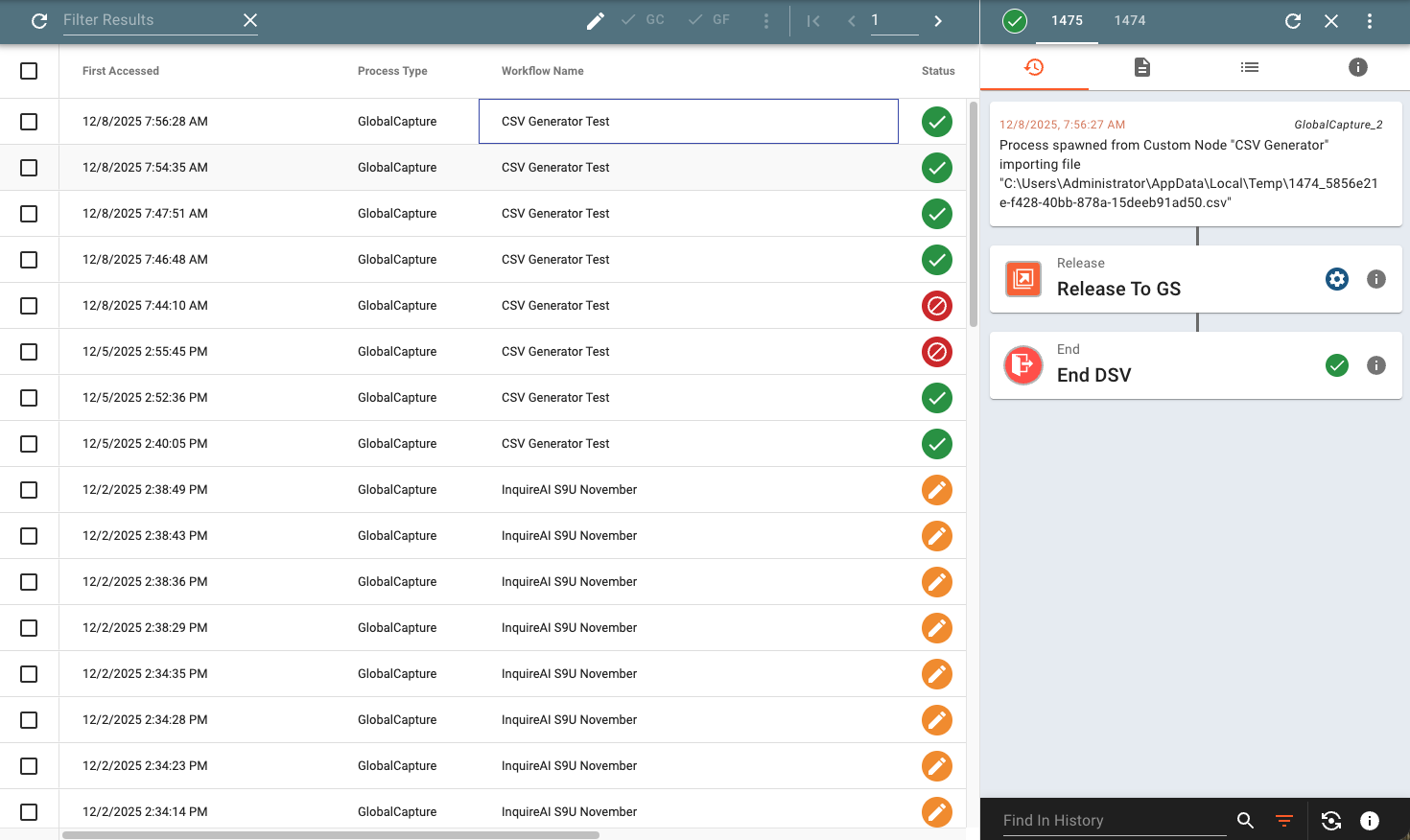 This is the path the generated CSV file will follow. A new process in GlobalCapture is spawned for this document.