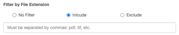 Exclude - All files will be ingested EXCEPT those with extensions listed in the input box.