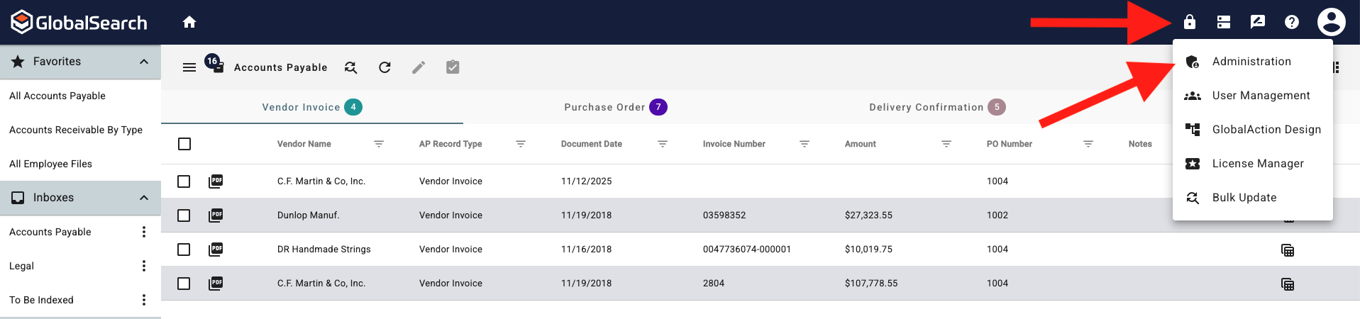 Login to GlobalSearch and select Administration (