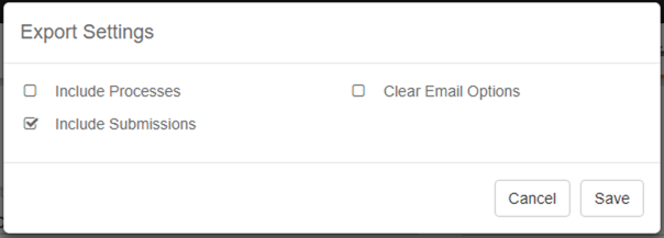 - Include Processes - Includes all process data from workflows selected for export.|