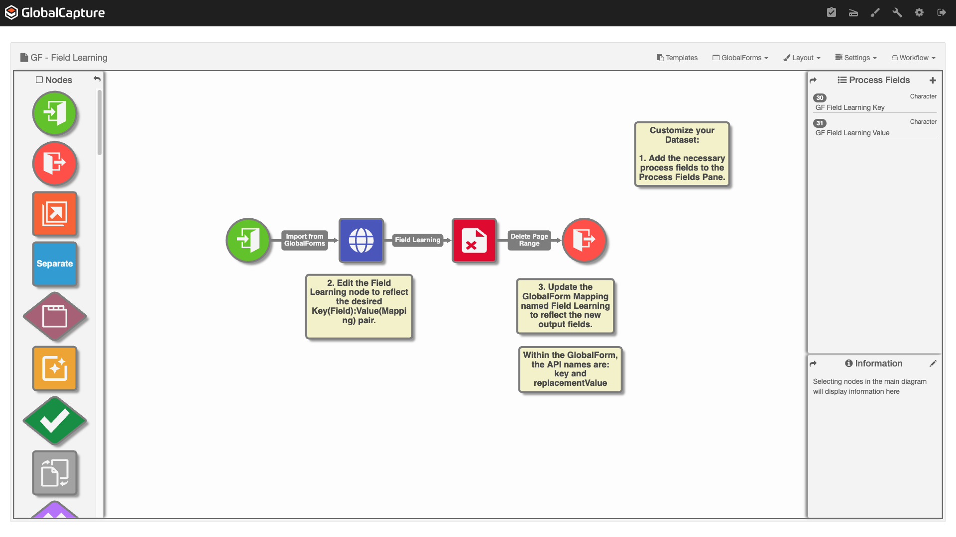 The Field Learning node is available for GlobalCapture and GlobalAction in the Cloud. The licensed version that allows for setting multiple fields is only available in the Enterprise cloud tier or when licensing InquireAI.