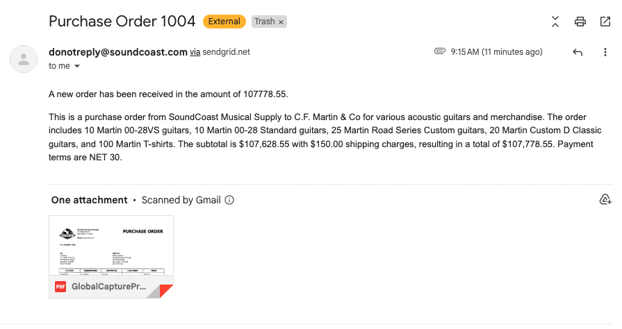 You are a knowledge worker tasked with understanding purchase orders and sales orders. Carefully read the PDF file and extract header fields that will aid in management of these document types. Extract the following fields: