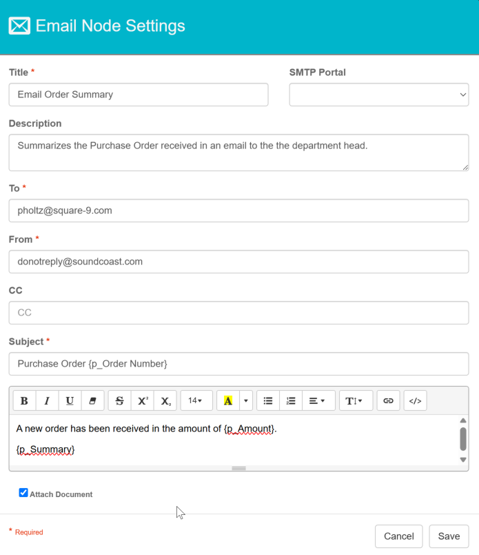 Using S9 Notation, use the data collected by InquireAI in an email. This can be useful as a notifier of receipt of a document, a summary of the document, etc.