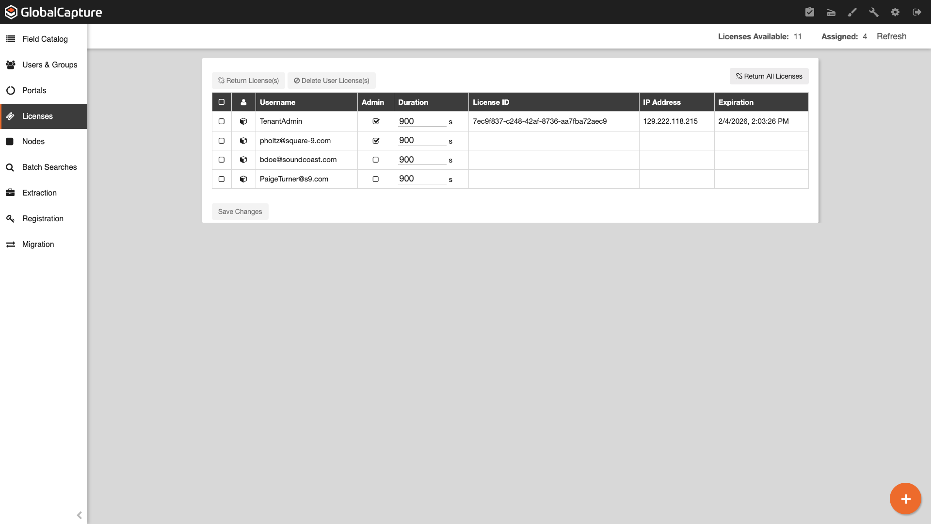 Licenses can only be assigned by a GlobalCapture Administrator.