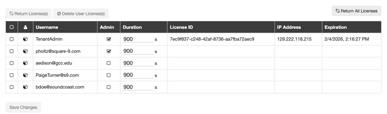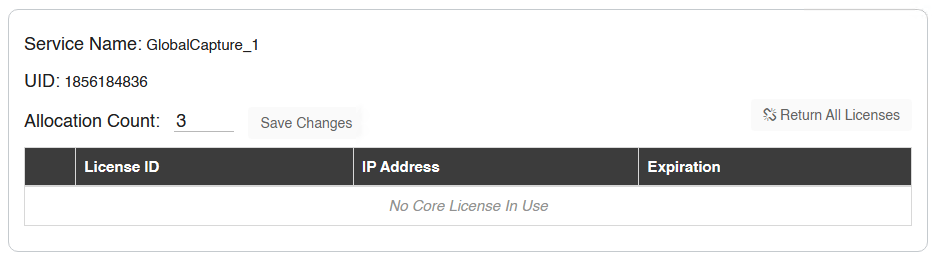 Return All Licenses - Returns licenses for ALL users except the person currently managing the users. This does not remove the users access to GlobalCapture.