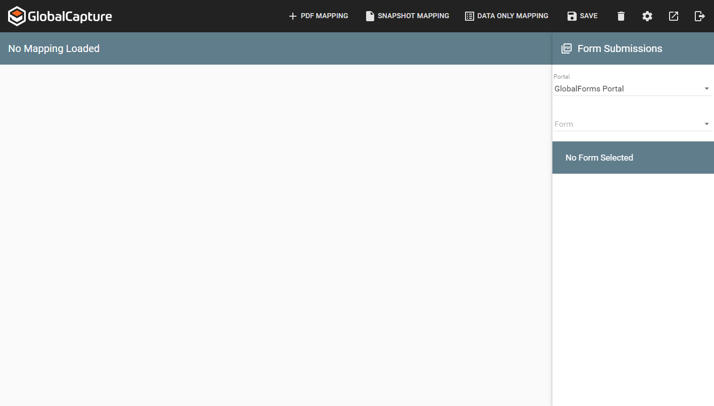 When the GlobalForms Mapping utility is launched, you will see a familiar (but empty) document viewer interface.