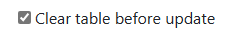 When a table is selected, an option will be displayed to clear the table before it’s updated from the AI service. Use this option if you wish to ensure a table only contains data from the AI services at the time of retrieval. Leaving this option unchecked will leave any data in the table in tact, and data from the AI services will be appended into the table.