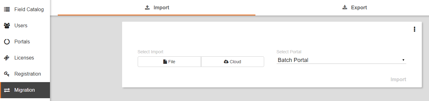 The default option is to Import. Click the Export tab to export a workflow configured on this system.