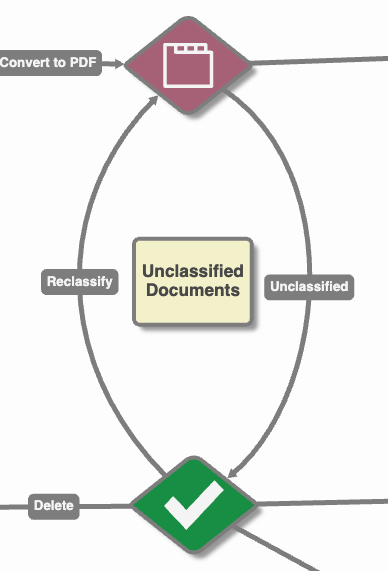 The Validate node has been configured to send documents to different archives based off of what type of document it is. This process will require users to access the Batch Portal and manually send these documents through the remainder of the workflow by choosing one of the following actions available to them.