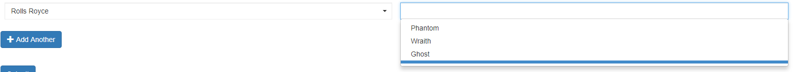 The first route returns a unique list of vehicles, and is leveraged by the Make list in the form example. The second route returns a list of vehicle models of a particular make and is used by the Model list. When the model list requests the data, it is expected to pass the desired make along in the request to return only the models of interest. Be sure to test the routes directly, outside of a form to ensure they are working as expected. It's much easy to troubleshoot route issues in this way.