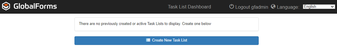 Beginning in GlobalForms 10.3, new interfaces are available for form driven task management. As a form designer, you will notice a Task List Dashboard form is available in Forms section of the GlobalForms administration page. This dashboard form will act as your administration portal for managing lists.
