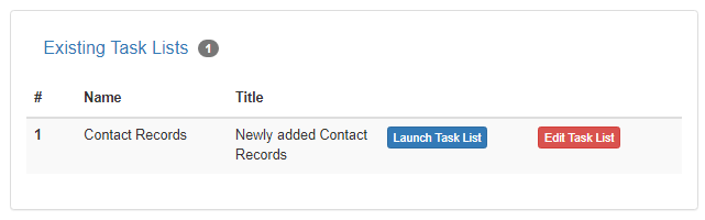 Clicking Edit Task List will allow you to make edits to the list configuration. Clicking Launch Task List will open a new browser tab with the list. The URL of the form that opens should be shared to any users of this list.