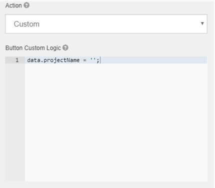 - For a Button with a Custom Action type, you can create your own version of a reset button that only clears or resets specific form elements. For a field with the Property Name projectName, use the following JavaScript: