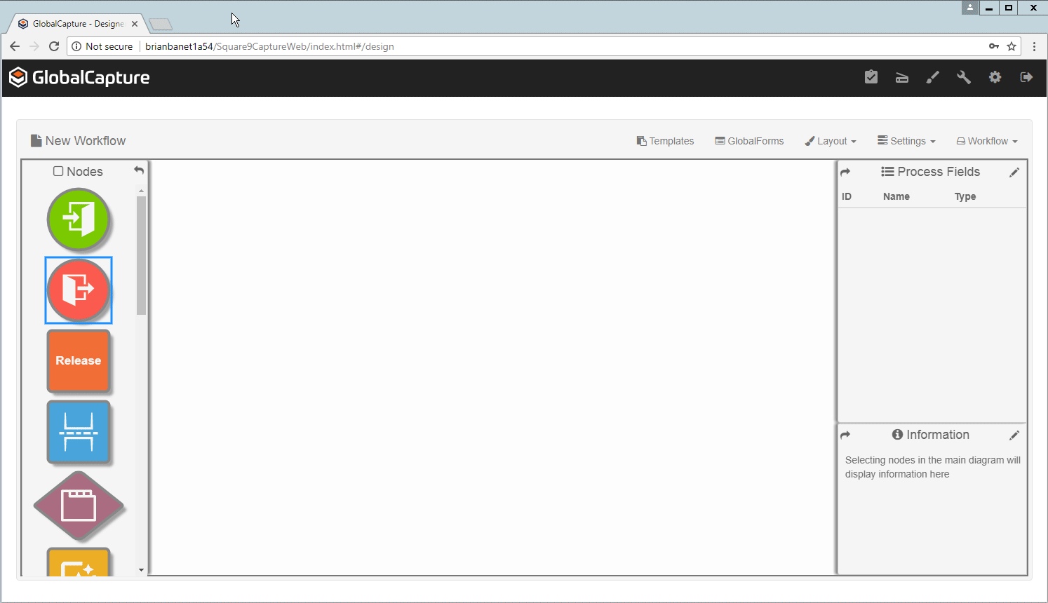 GlobalCapture is the processing engine that ingests form submissions. Once GlobalCapture has picked up a submission, it creates the PDF based on your mapping and begins processing. Your GlobalCapture process can be as simple or as complex as required to meet any business need. At the most basic level, you can create a GlobalCapture process that involves just three Nodes to generate documents from submissions.