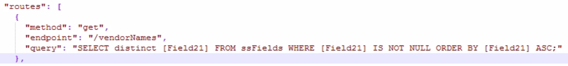 - In the routes section create a new route with the SQL query you are going to be using, with two needing to be configured for each query you wish to expose.