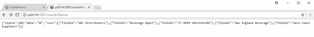 - You can then browse to the route you create in your browser and you should get a JSON response containing the data set you queried.
