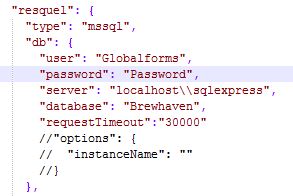 - Navigate to X:\GlobalForms\config and open default.json (X: is the drive in which GlobalForms is installed)