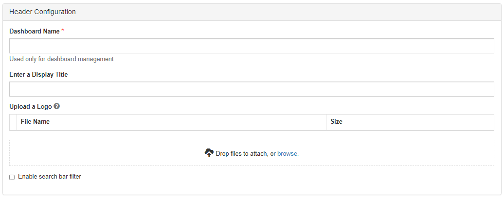 Dashboard Name - This is a required element, used only by the administrator. This is the internal name used in the Dashboard Form.