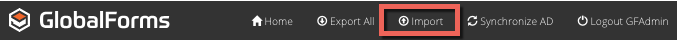 - Make copies of forms for testing changes: It is easy in GlobalForms to copy or clone a form beginning in GlobalForms 10.2. Start by exporting the form per the instructions in item 3 above. With an exported form available, click the Import button in the GlobalForms header bar.