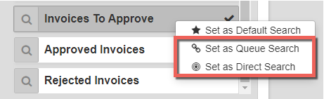 Once the View permission, right click on the Search and use the context menu to set the Search as both a Queue Search and the Direct Access Search.
