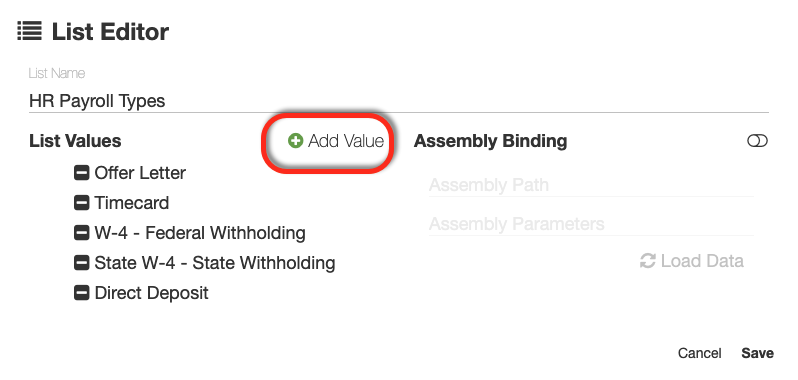 - With the list editor open new picklist values can be easily added or deleted