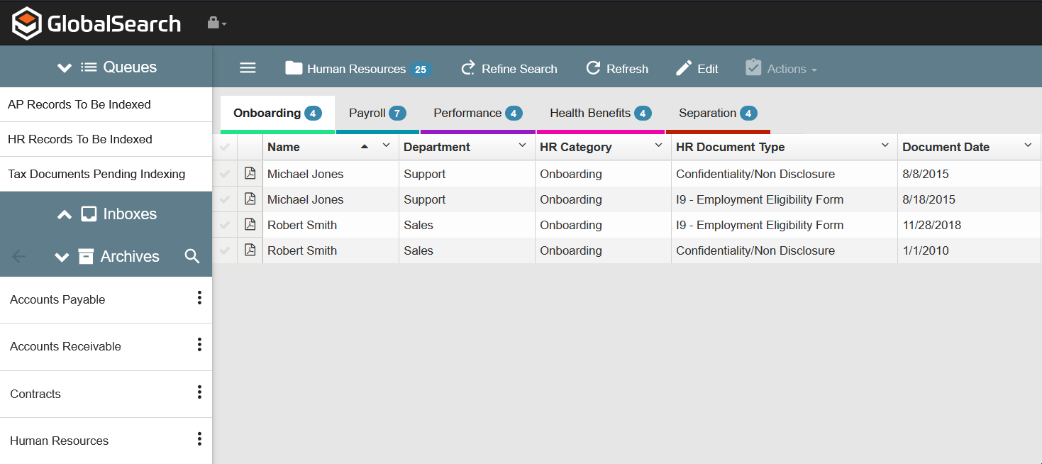 GlobalSearch Business Essentials delivers a powerful and secure cloud solution for managing the documents used commonly by businesses every day - regardless of their industry. This solution is pre-designed using best practices for capturing, storing, protecting and retrieving your information quickly and efficiently. Practice areas include the management of records for Accounts Payable, Accounts Receivable, Human Resources as well as Business Contract Management.