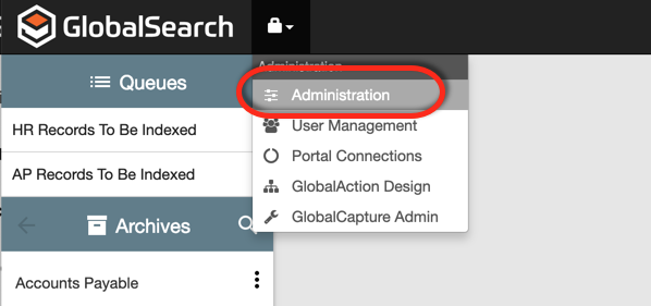 - Go to the Administration tab by clicking on the lock icon in the upper left side of the title bar and selecting Administration.