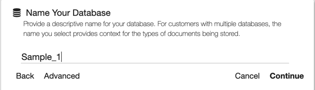 - Provide a name for your database. Note: Database names may not incorporate any spaces. Please use a single word description such as Accounting or join words with an underscore (i.e. Human_Resources).
