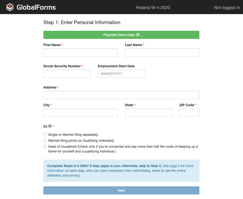 The GlobalSearch C2 for Business Essentials community can easily extend the digital transformation capabilities of their installation through the addition of GlobalForms 10. We have created prepackaged forms and workflows that quickly add the efficiency of web forms management through a plug and play experience. Given the critical nature of employee on-boarding, we have included pre designed solutions for both the Federal I9 and W4 forms. These forms and workflows can be downloaded for use within the Human Resources archive of GlobalSearch C2 for Business Essentials .