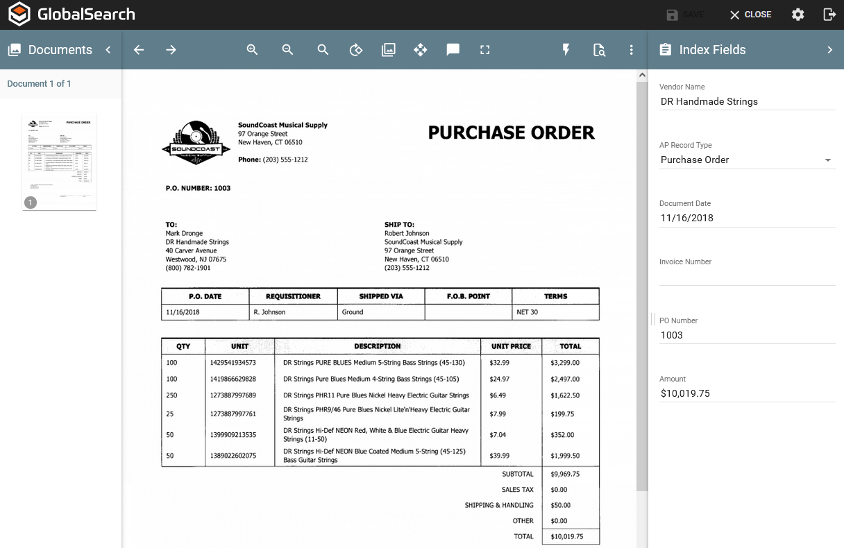 The Accounts Payable Archive is home to all your purchase information including your Purchase Orders to vendors, their Packing Slips or Delivery Confirmations and finally Vendors’ Invoices that have been sent to you. With GlobalSearch C2 for Business Essentials, the ability to organize this information into easily referenceable records has never been easier.