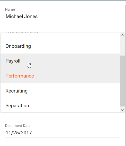 GlobalSearch C2 for Business Essentials uses a feature called Dynamic Picklists to to make this process easier by limiting the available HR Document Types presented to the user depending on which HR Category they choose. So if you chose Onboarding for example as your category, you would not see the option for a Healthcare Registration Form as an HR Document Type. You would only see that form if you selected Health Benefits for your HR Category. This not only makes indexing documents much easier for the user, it also enforces the filing of records into the correct Document Categories which is highly beneficial.