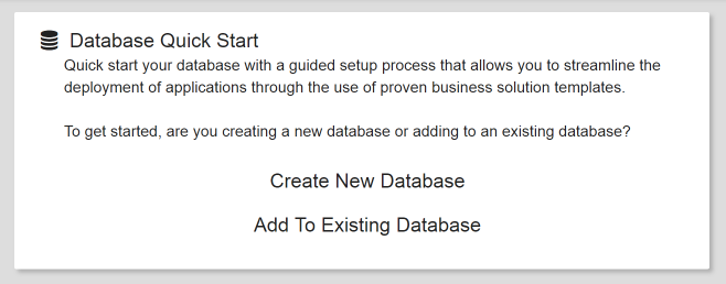 - Quick Start will initiate the process by requesting you to select whether you would like to Create a New Database or Add to an Existing Database. Select Add to Existing Database.