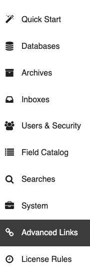 From the GlobalSearch Administration page, select the Advanced Links option.