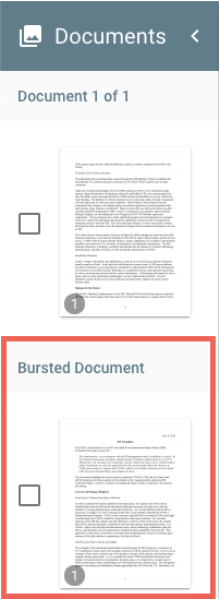 You can quickly and easily split (or Burst) multiple pages of an image-based document (such as a PDF) to create a new record. Using the Thumbnails Pane in the Document Viewer, you can view and select specific pages in the document for bursting. With permissions, you can choose to delete the burst pages automatically from the original record or retain them.
