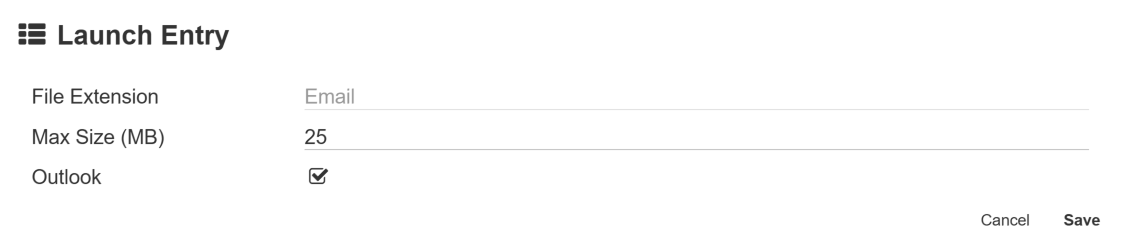 To create entries in the Launch Table for applications on your local machine, select the Launch option in the vertical Extensions menu (this appears when Launch is enabled). Email should always be the first option in this list.