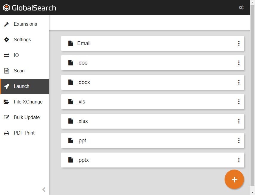 In the Launch interface, click the Add () button. While only certain document types can be viewed in the Document Viewer, GlobalSearch can store and launch any file type that you choose to store, whether it is a text file, spreadsheet, email, or video. The default Launch Table is preconfigured for popular Microsoft Office® applications: DOC or DOCX files will open in Word® 2000-2016, XLS or XLSX files in Excel® 2000-2016, and PPT or PPTX files in PowerPoint® 2000-2016.