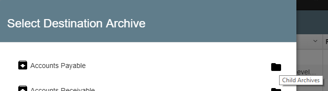 - In the event your database is designed using nested archives, an arrow in the folder icon will indicate that there are sub-archives nested below it. If you wish to navigate to a child Archive, click the Navigate Folder icon to the right of the Archive name.
