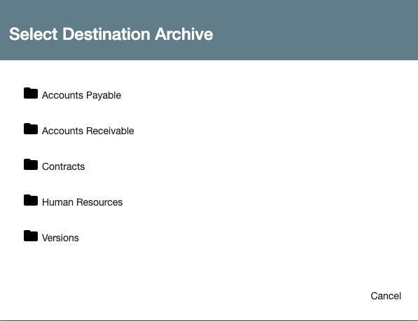 - When prompted in Select Destination Archive, click the folder icon to the left of the destination Archive name.