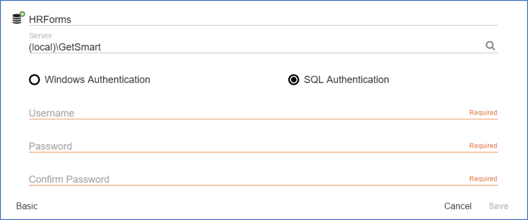 For additional database settings, click Advanced.