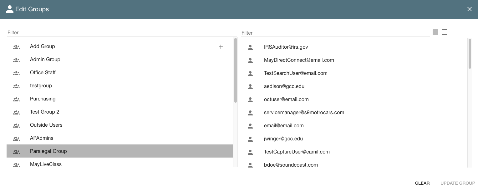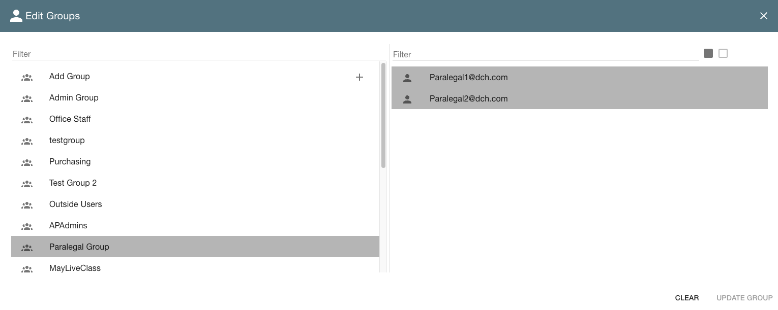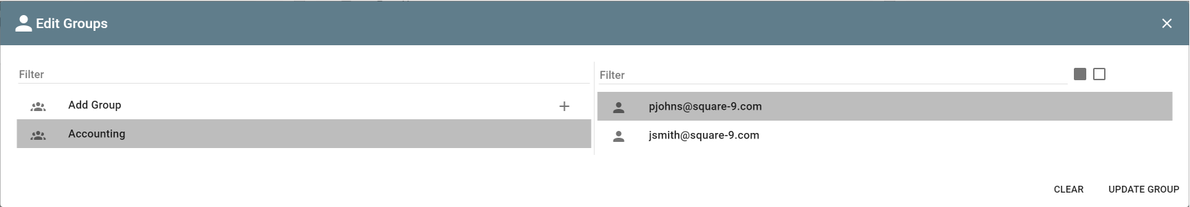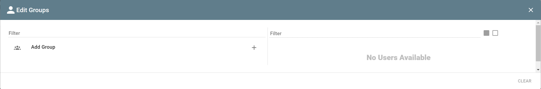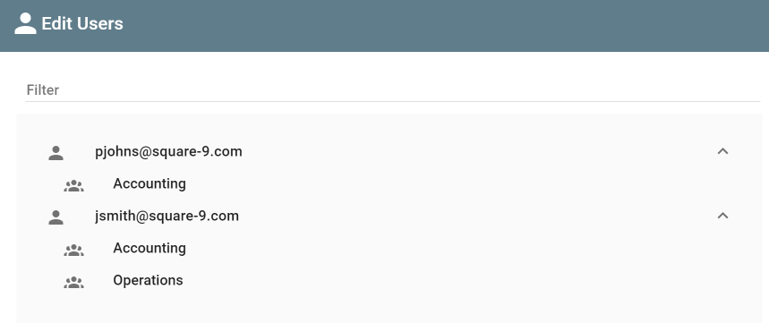 To find a specific user or group in larger lists, type the user or group name in the corresponding Filter text box.