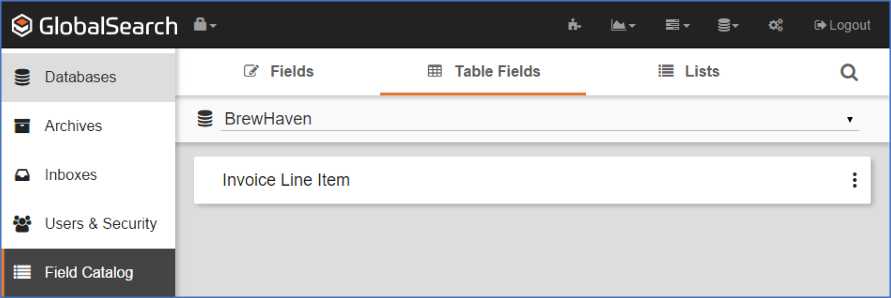 Table Fields in GlobalSearch are a collection of regular Index Fields that are grouped together and presented to the user in table form. Create the Index Fields that will make up a table first, then create the Table Field by selecting from the list of available Index Fields. Fields can be added to or removed from Table Fields as needed.