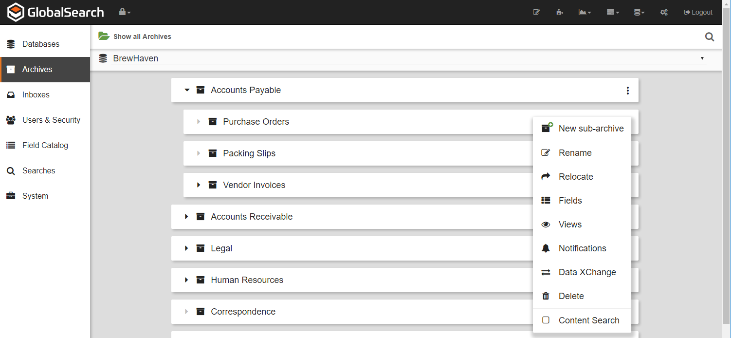 Once created, the Fields, Archive name, email notifications, Views, and Archive path in an Archive can be modified. Versioning and Check In/Check Out can only be created while the Archive is created and cannot be modified. A Browse Search is enabled while the Archive is created. If you add Fields to the Archive later on, be sure to go back to its Browse Search and update it.