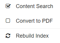 To allow the contents of text-based documents to be included in a Search, enable Content Search. When selected, two contextual menu items appear: